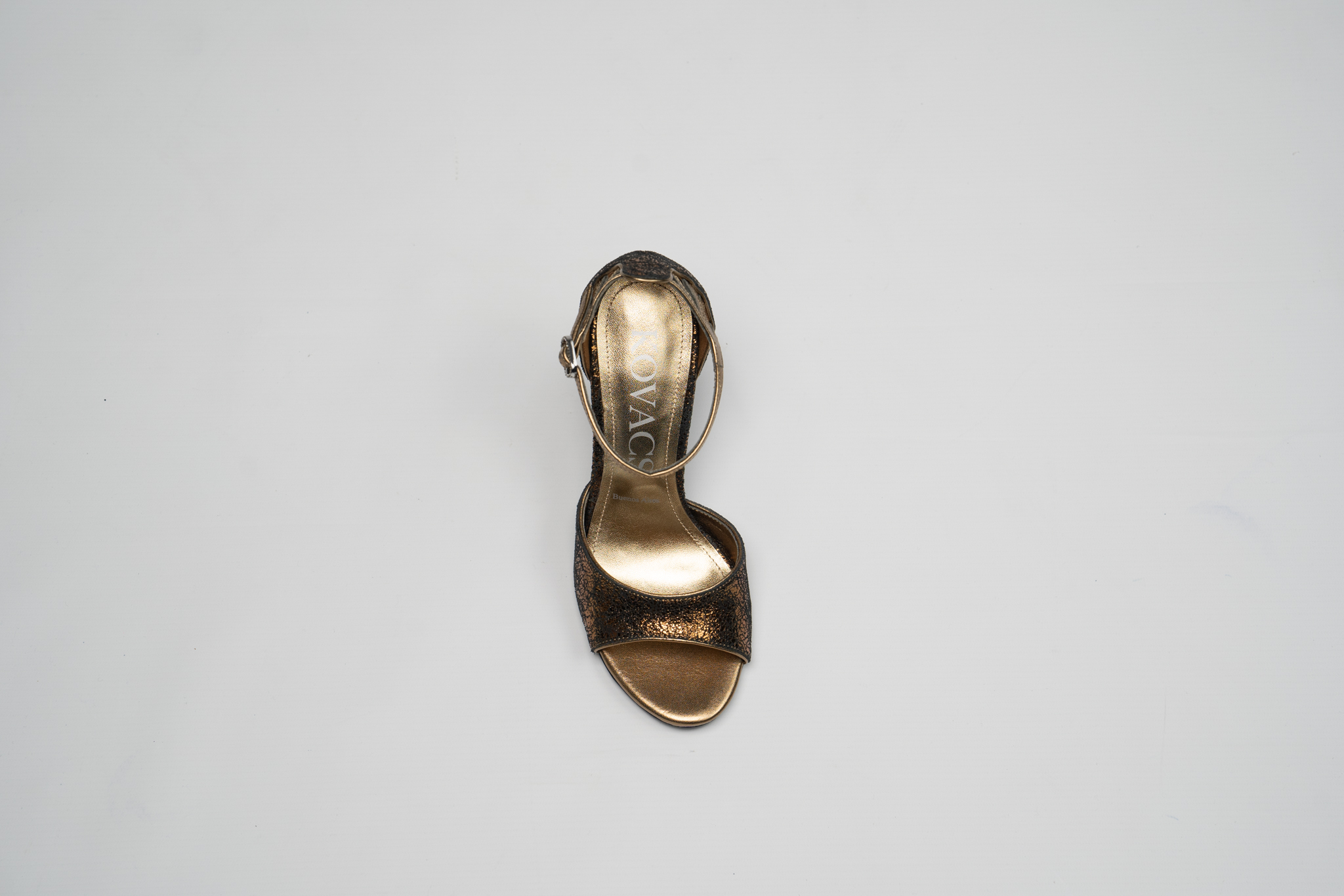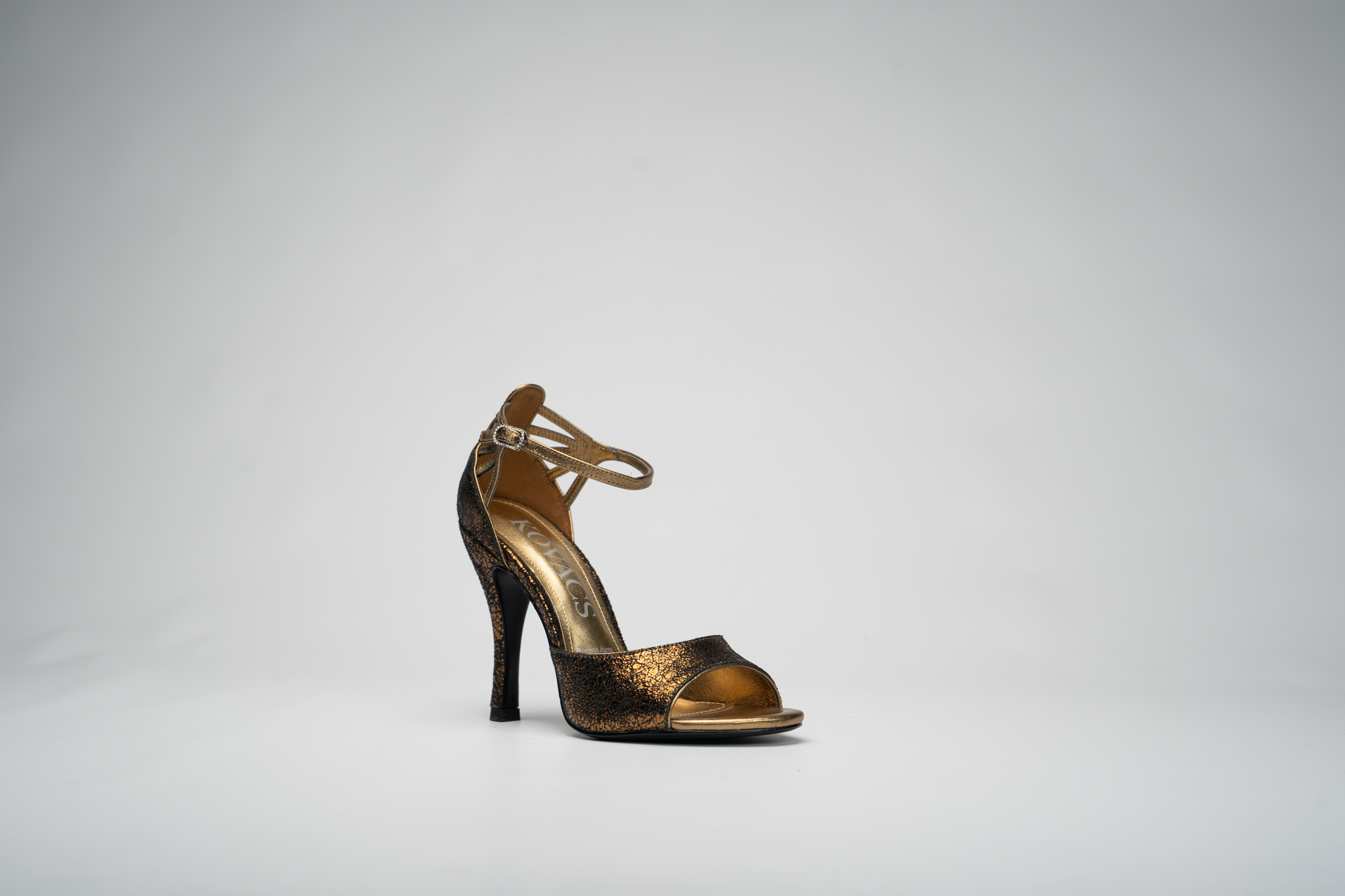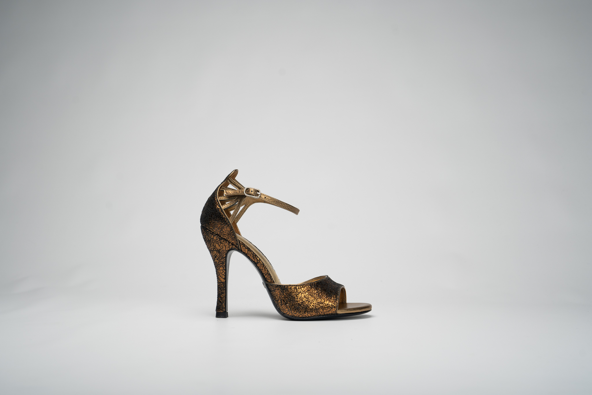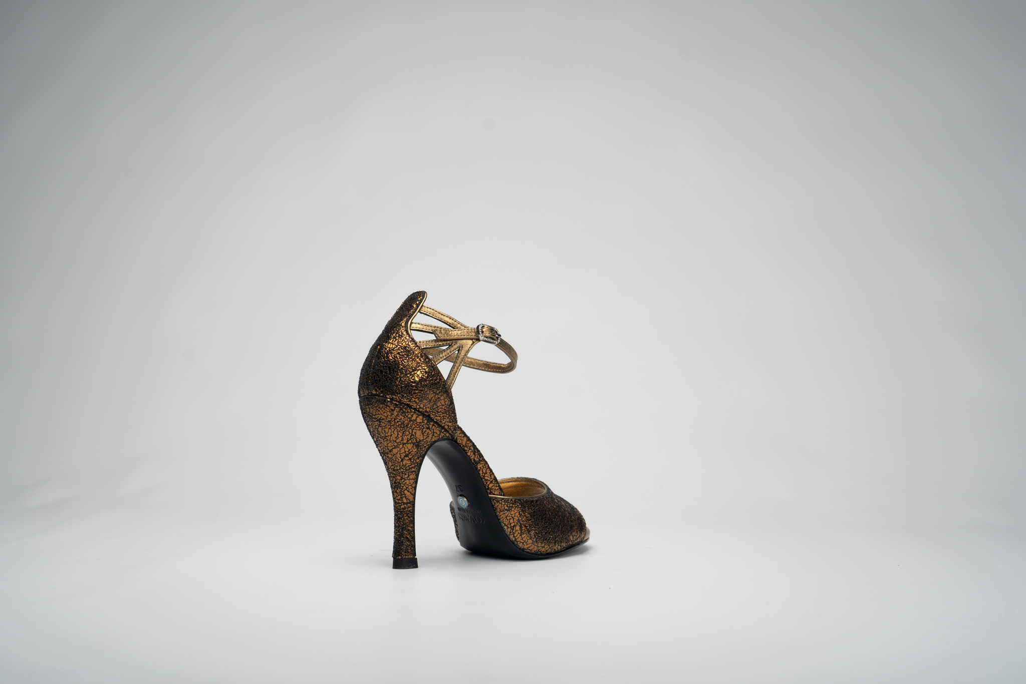 Parte superior y tacón de vampiro en piel craquelada bronce.
