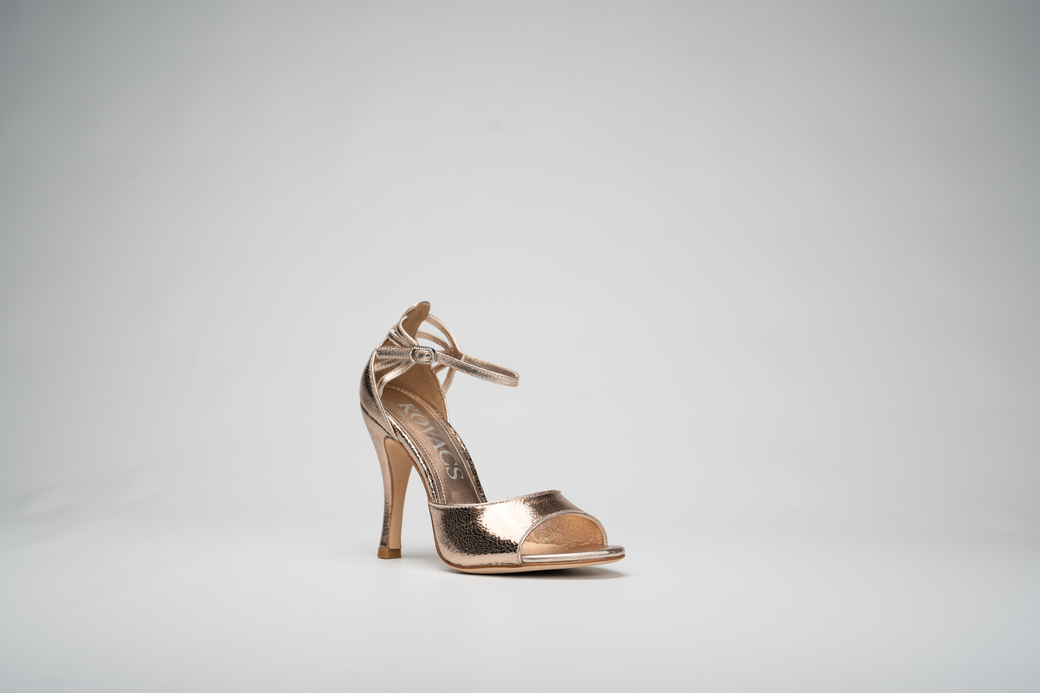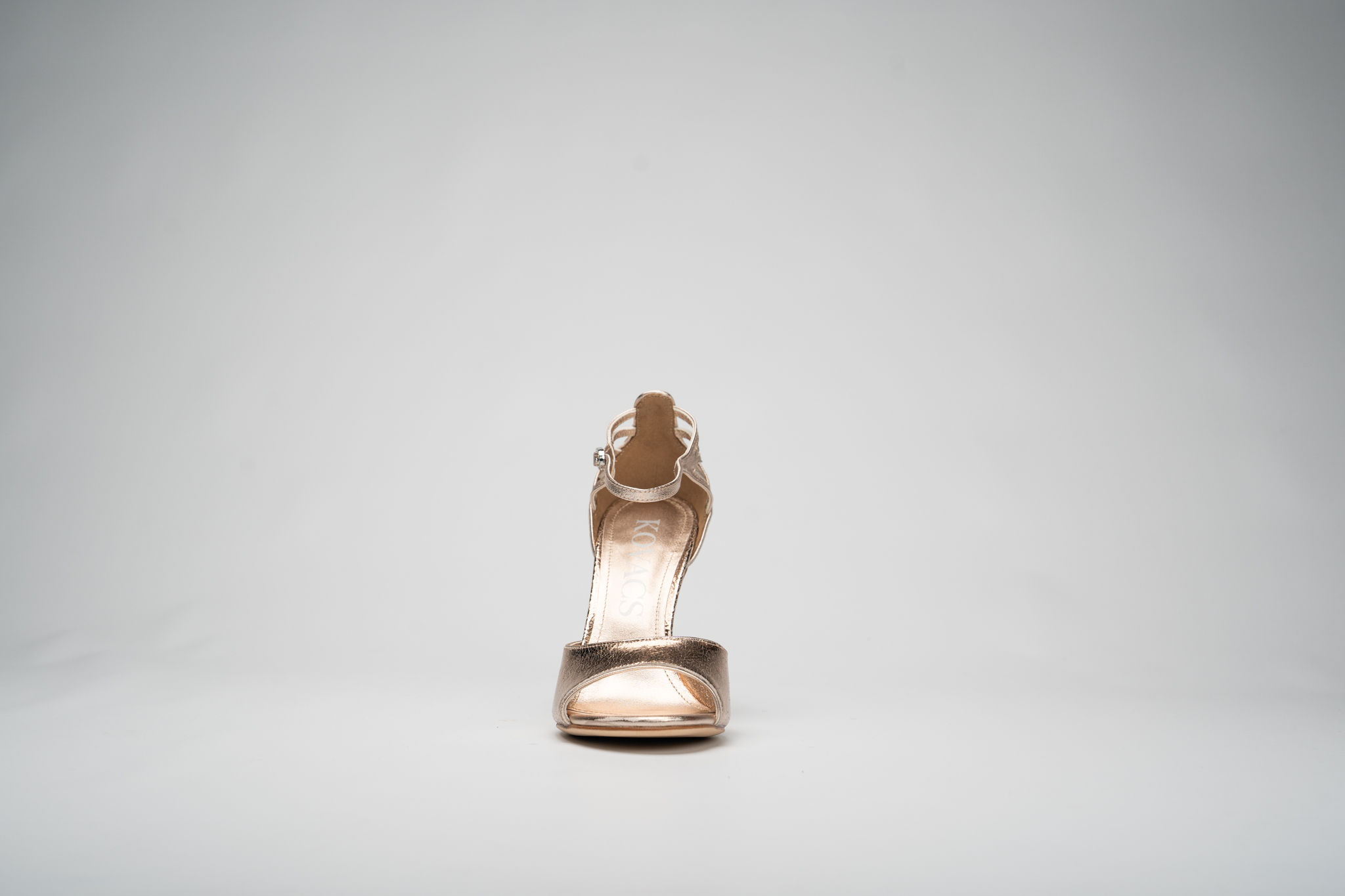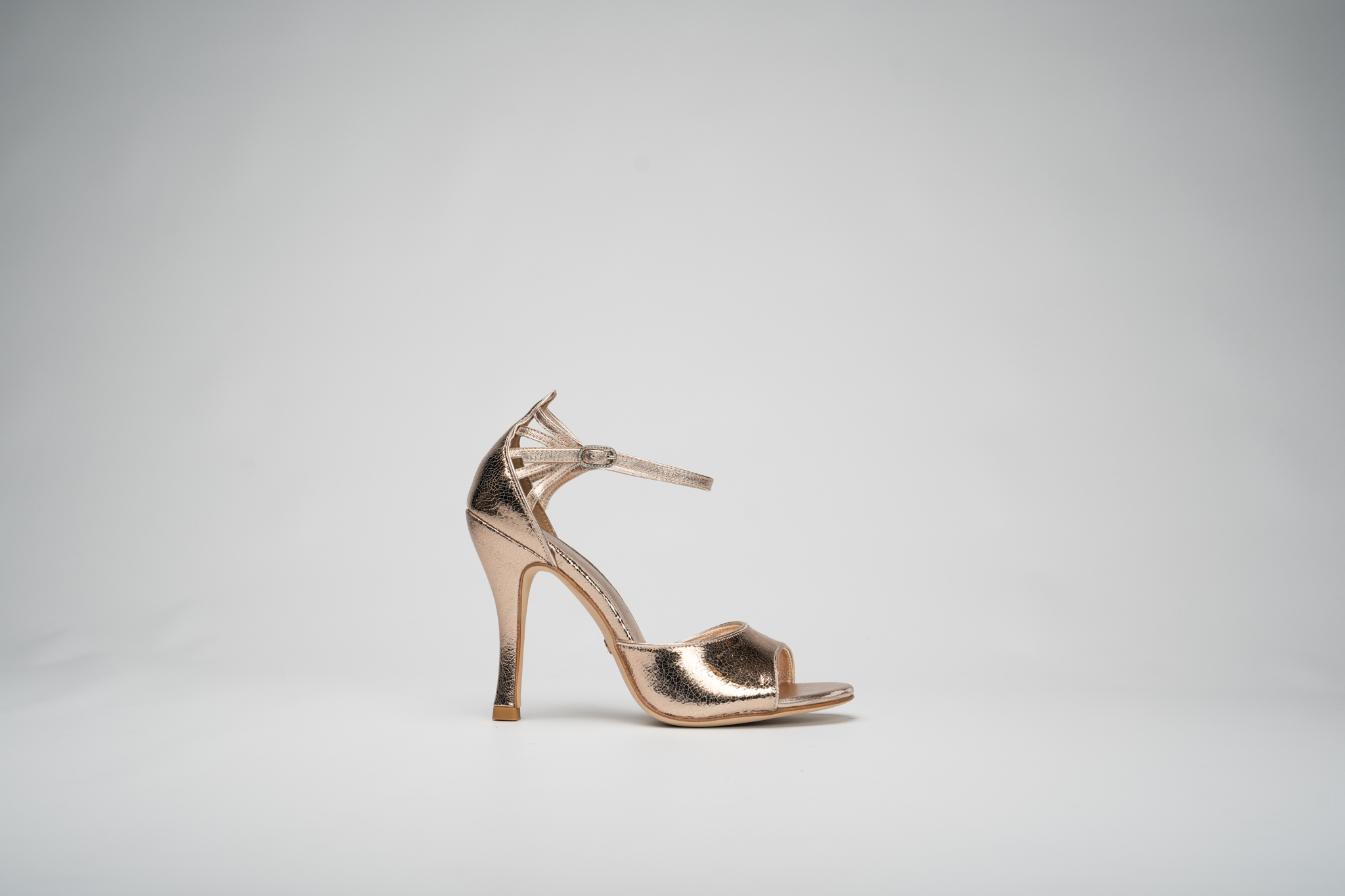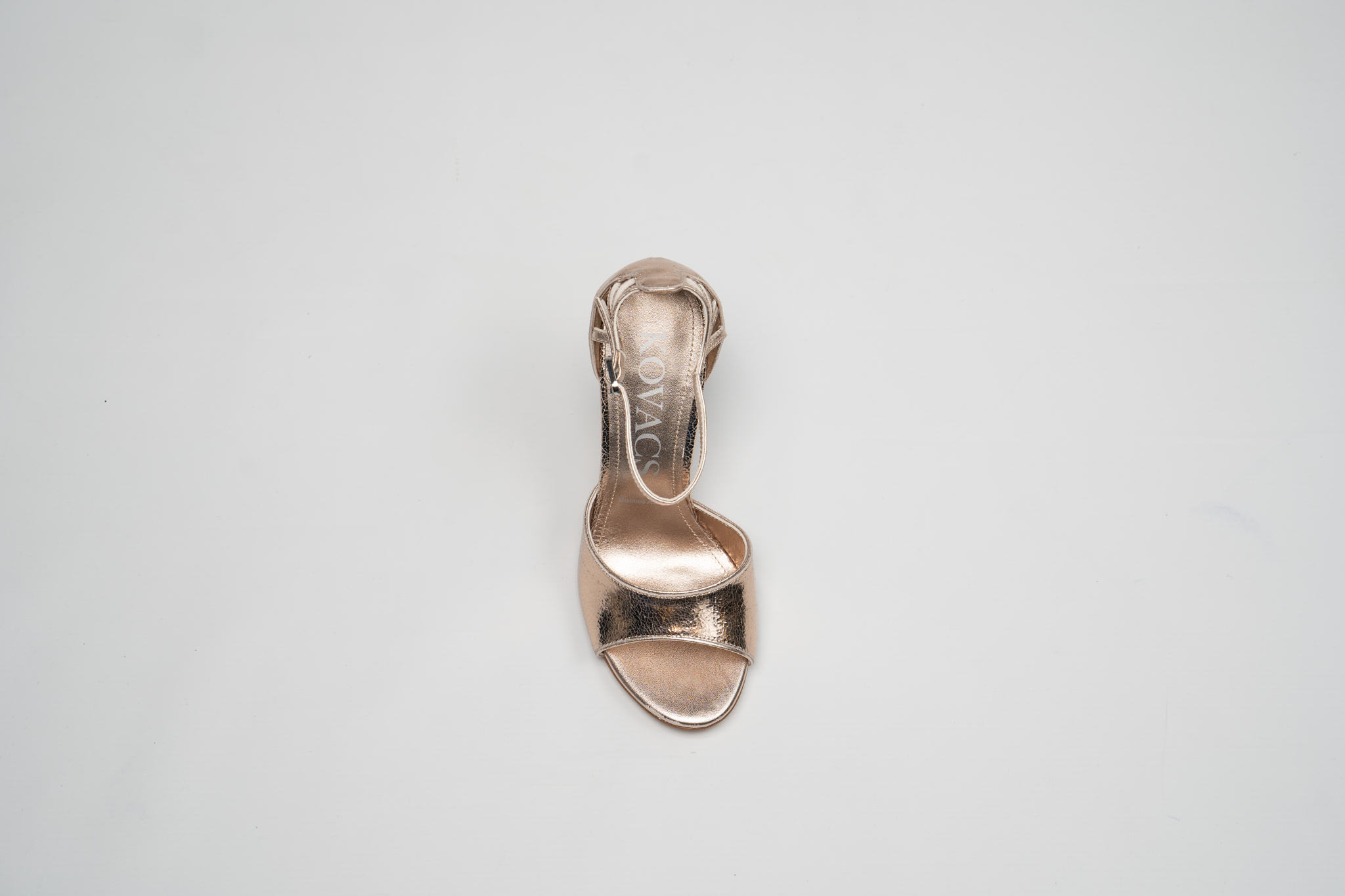 Plantilla con tacón forrada con piel brillante color champán craquelé