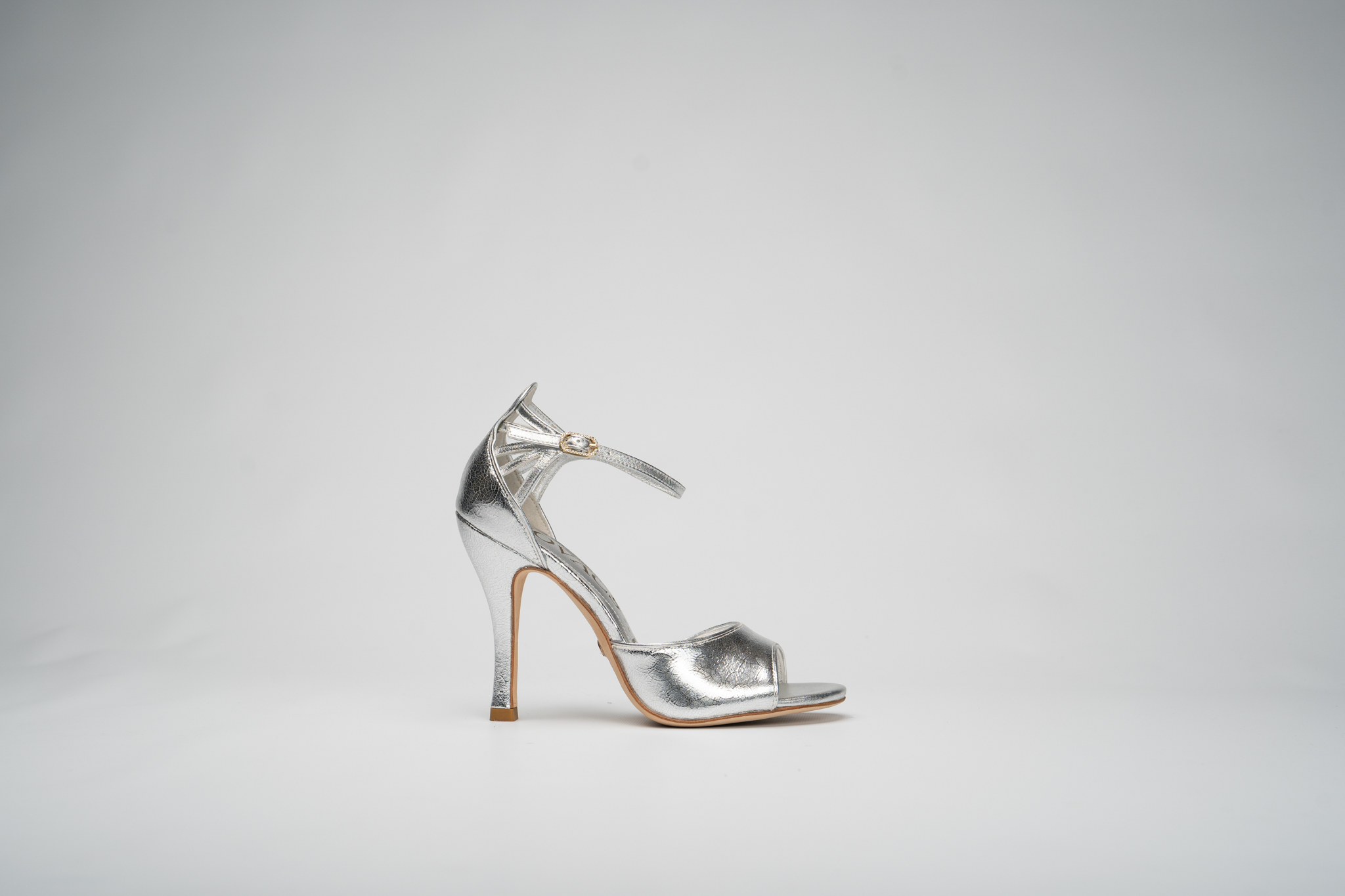 Plantilla con tacón forrada con piel plateada craquelada brillante