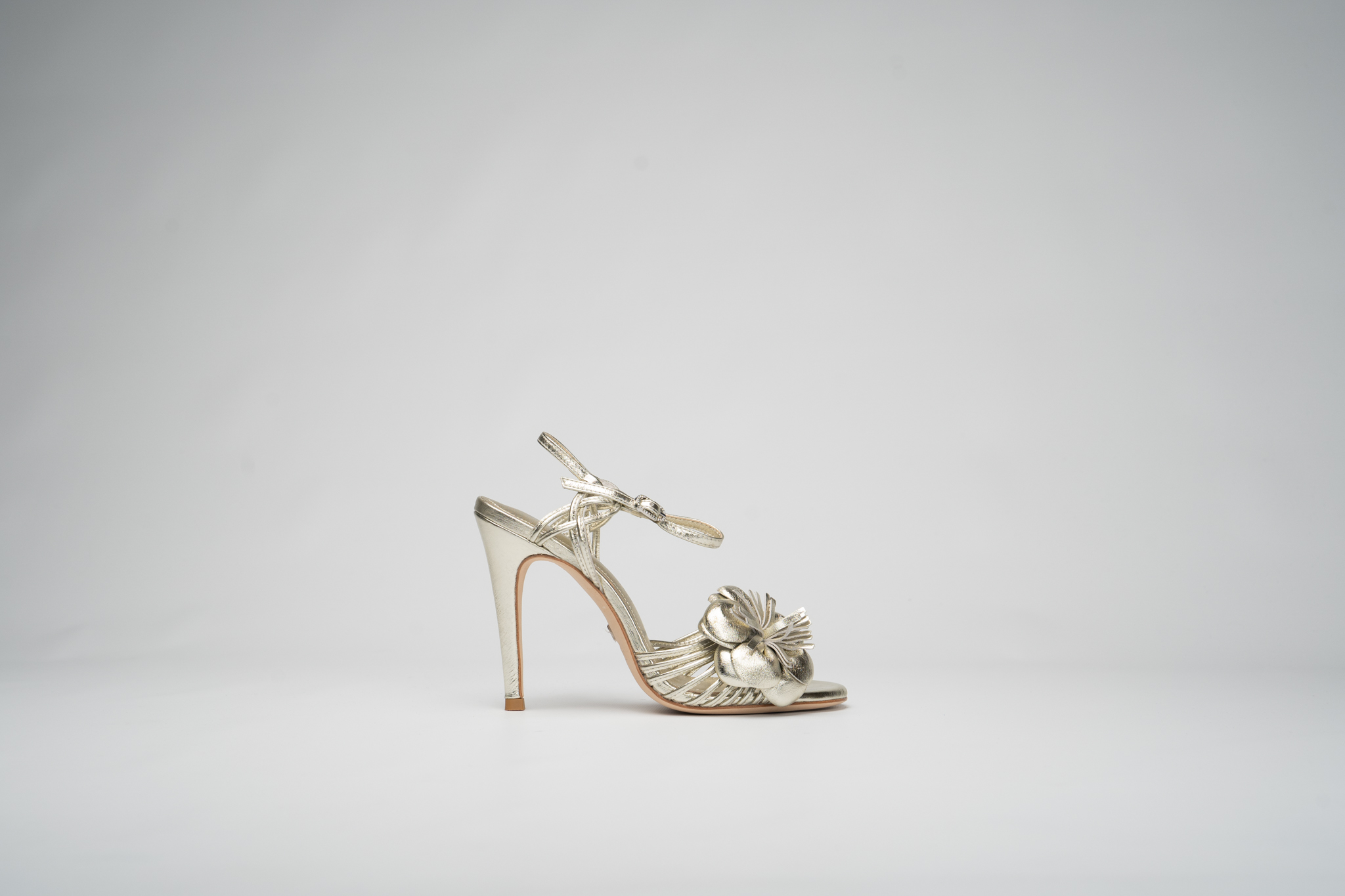 Sandalias de tacón alto con correa al tobillo y estampado floral
