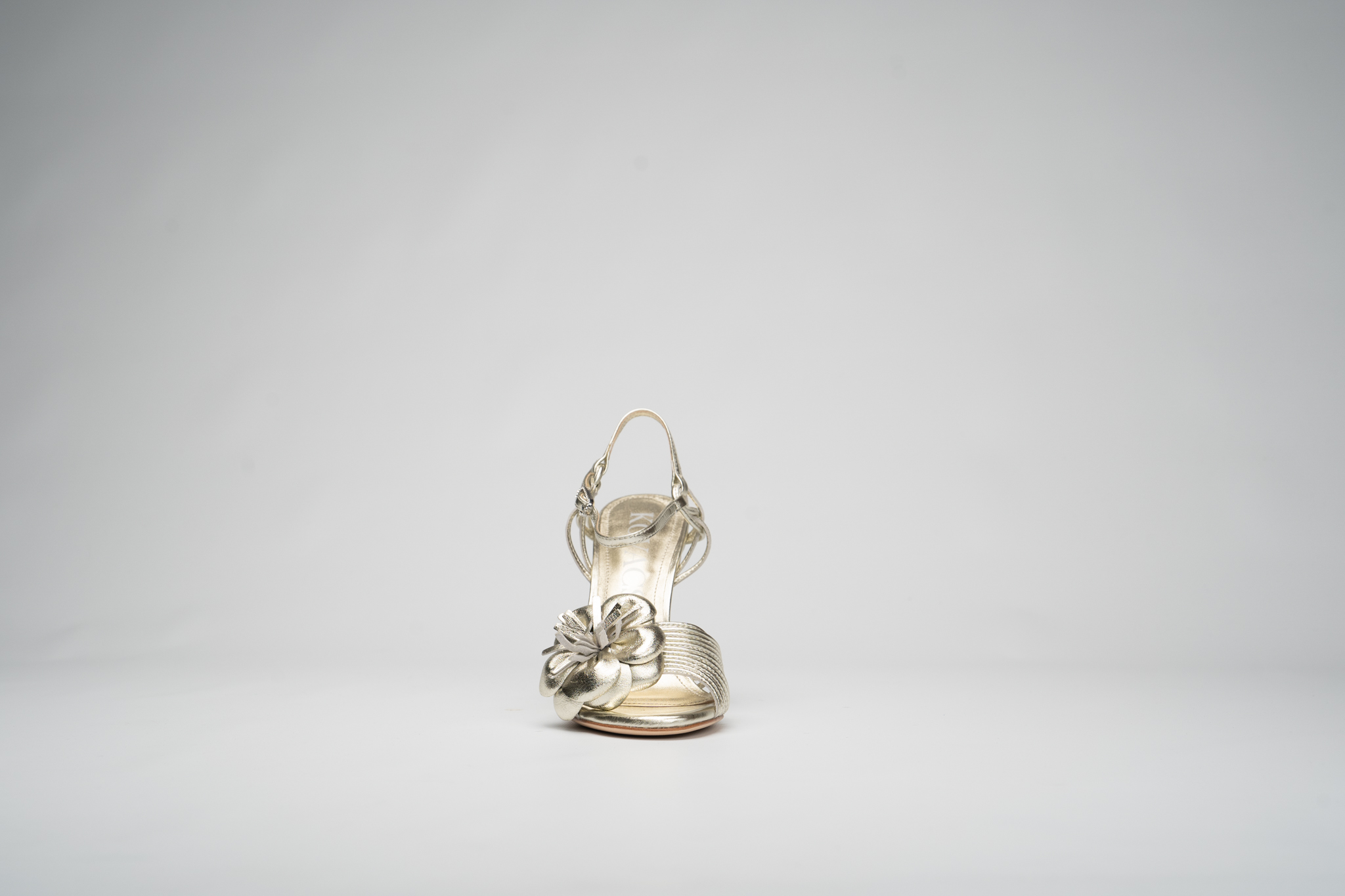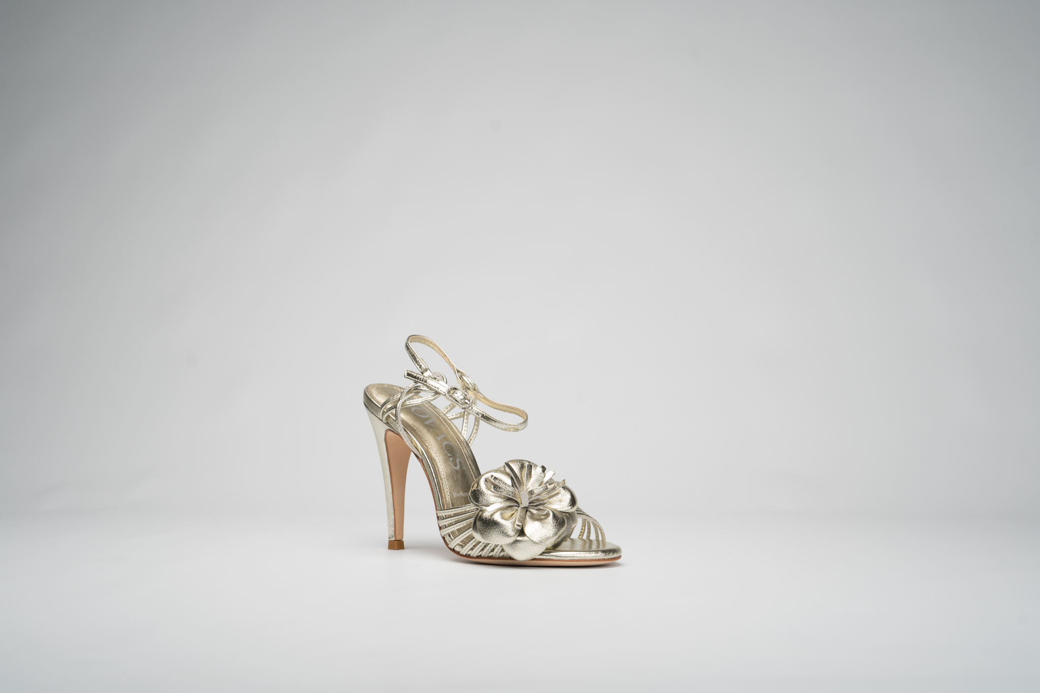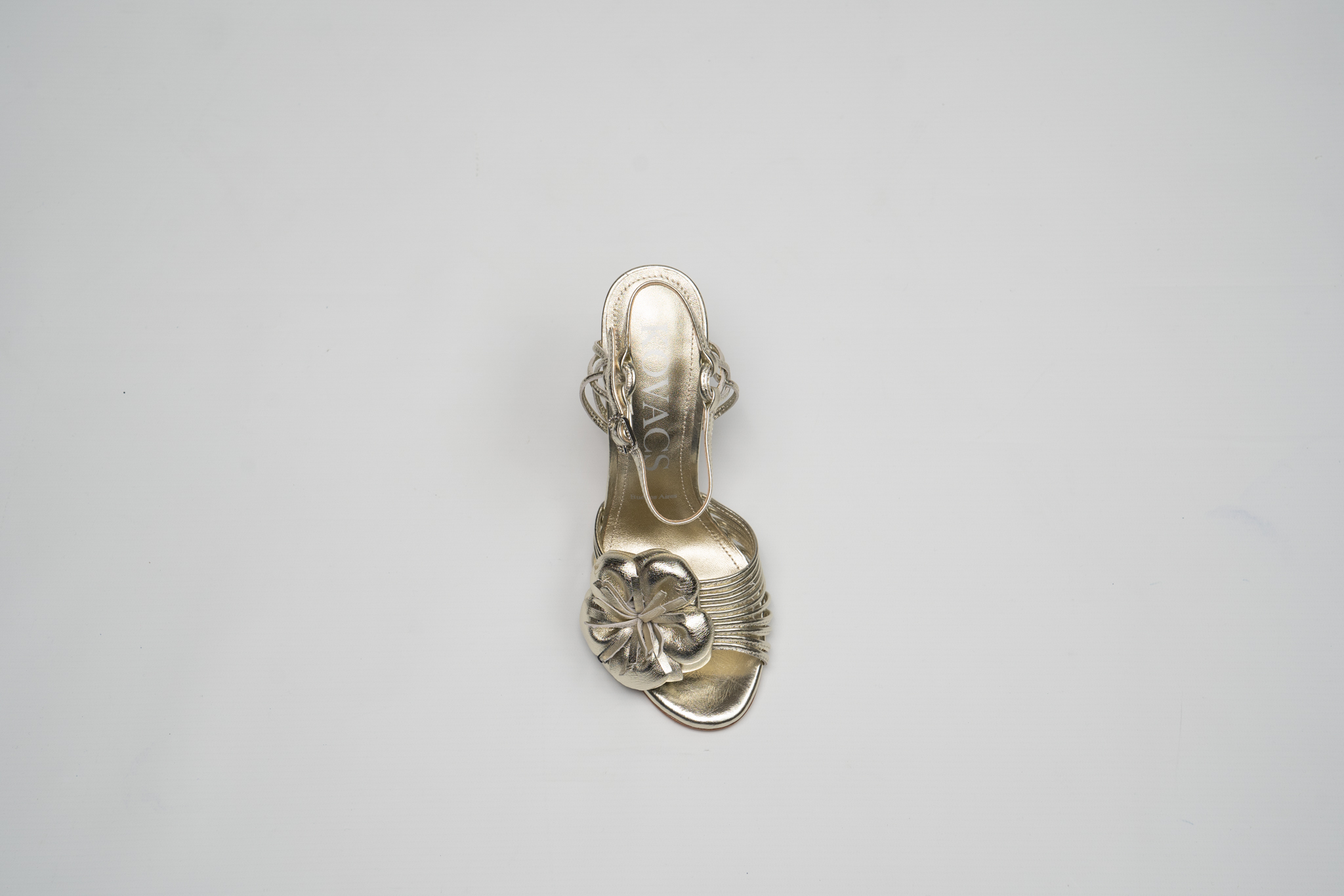 Plantilla de calcetÃn en piel dorada con la marca KOVACS en plata