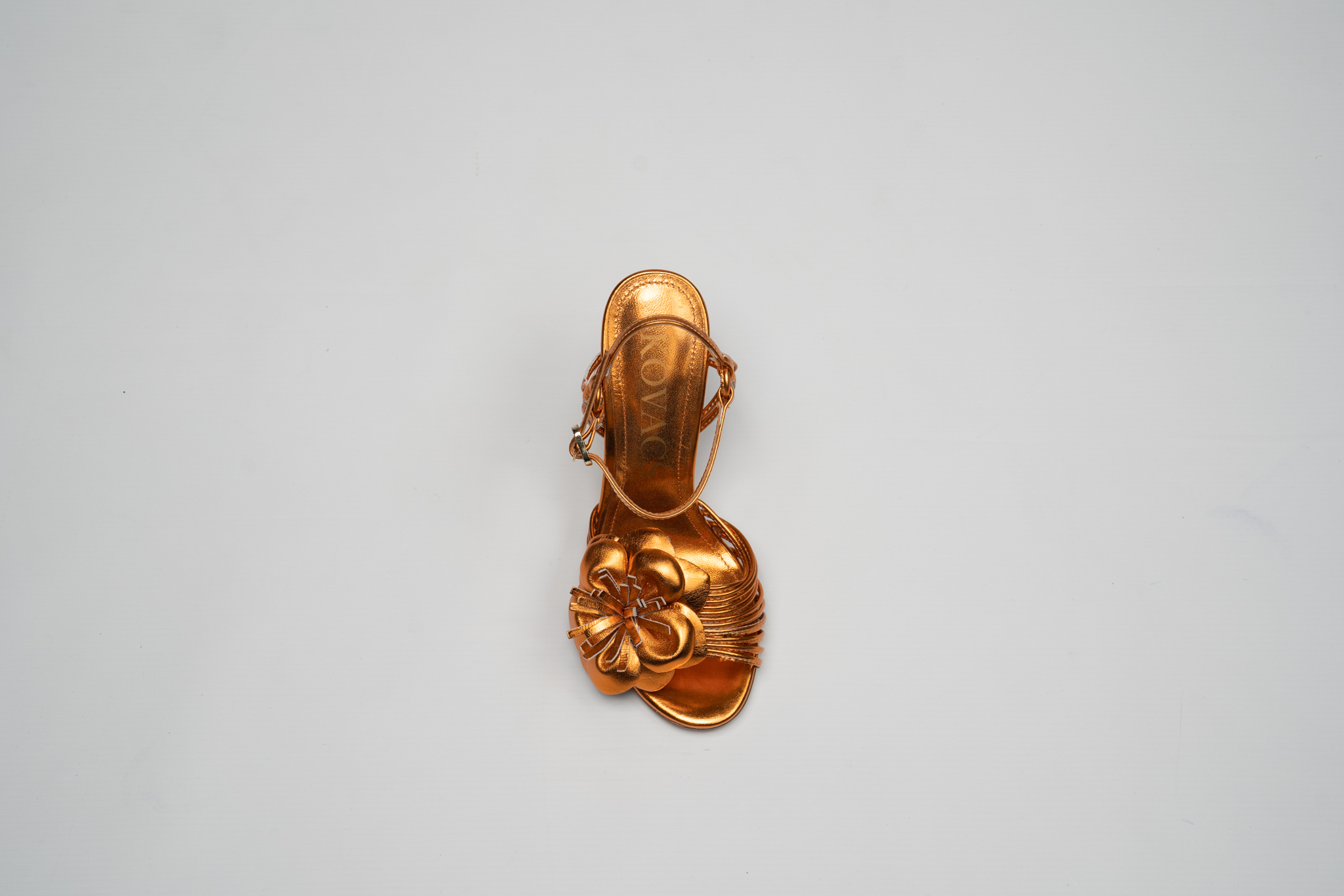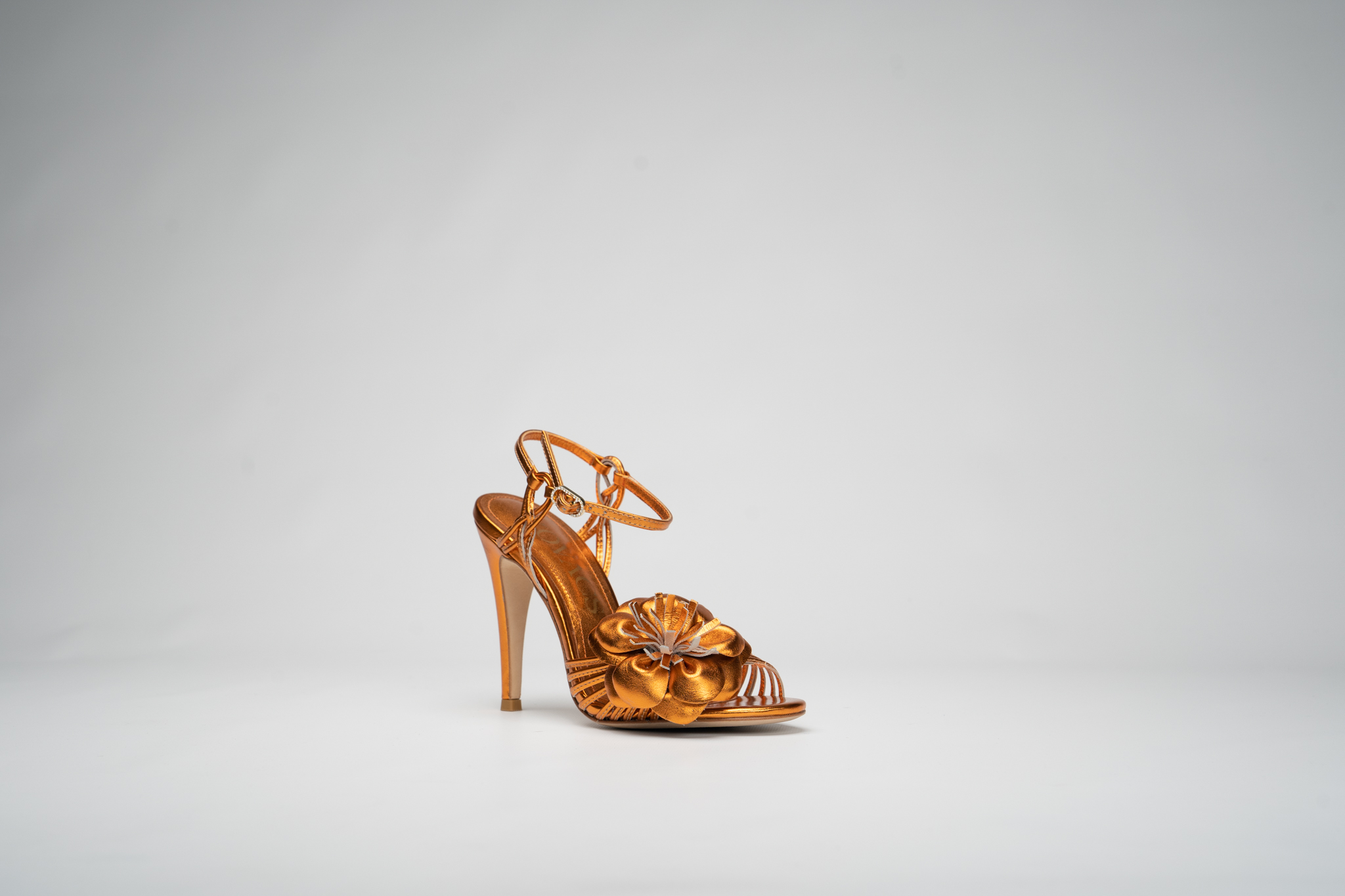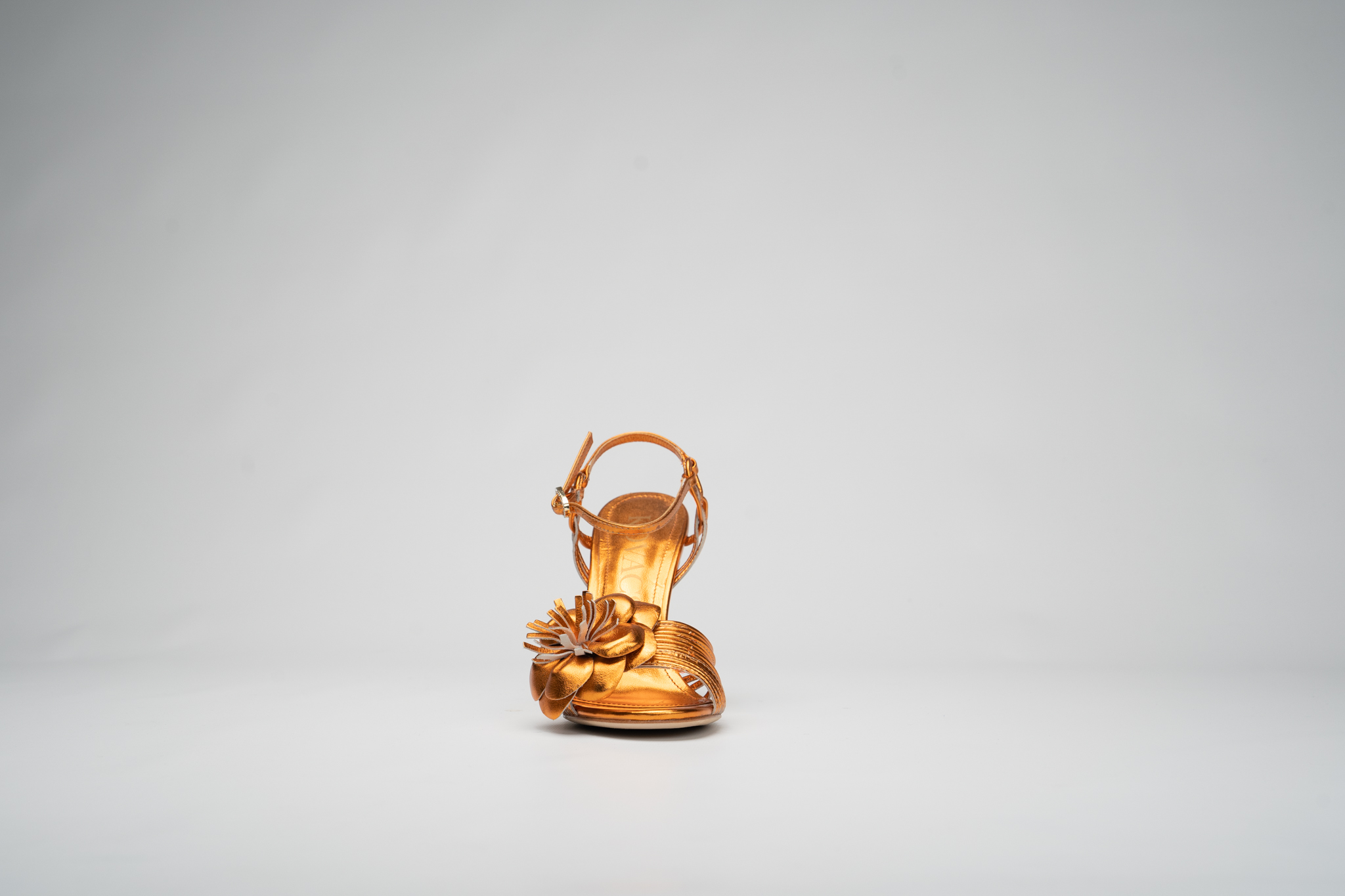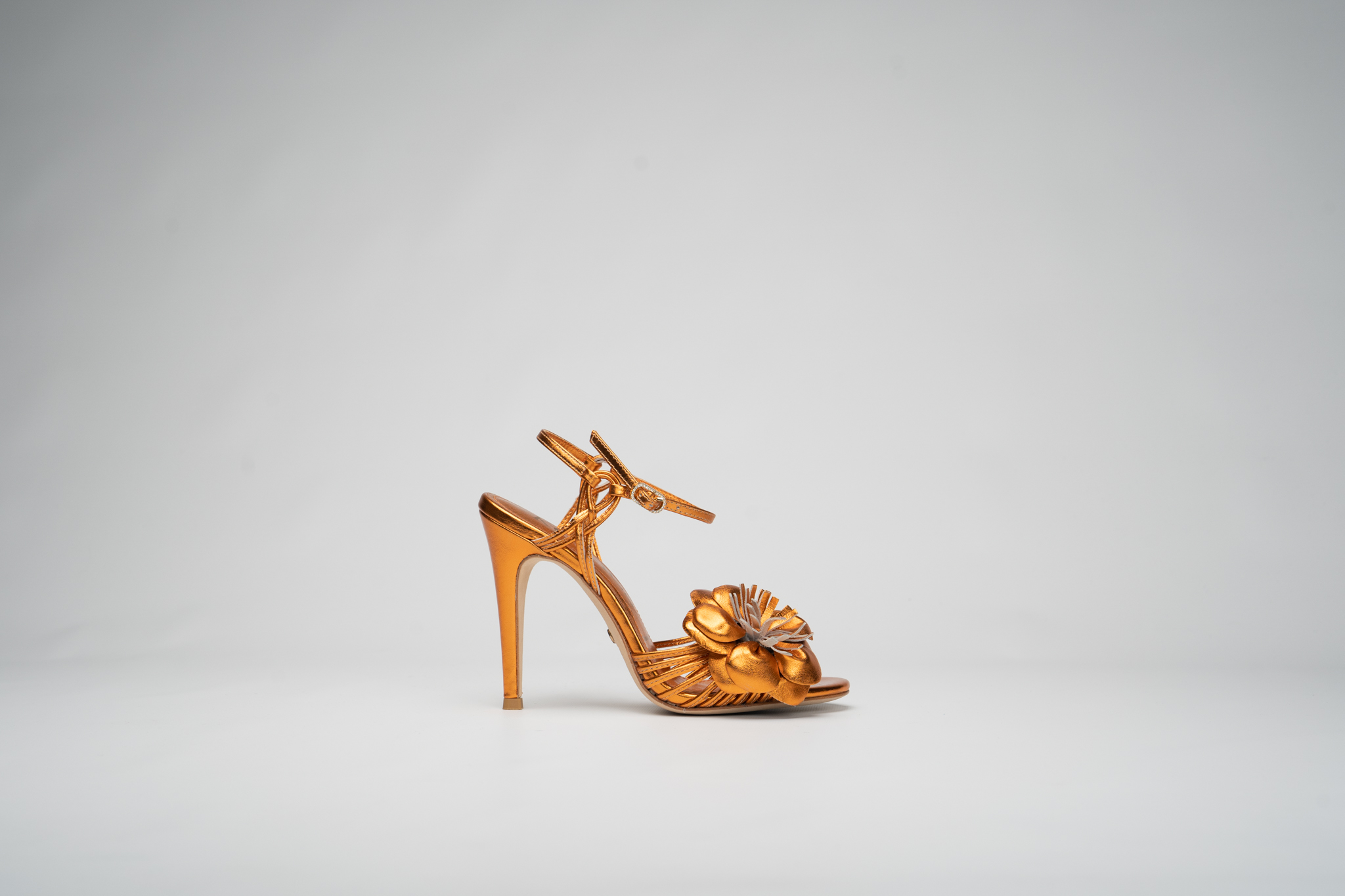 Sandalias de tacón alto con correa al tobillo y estampado floral