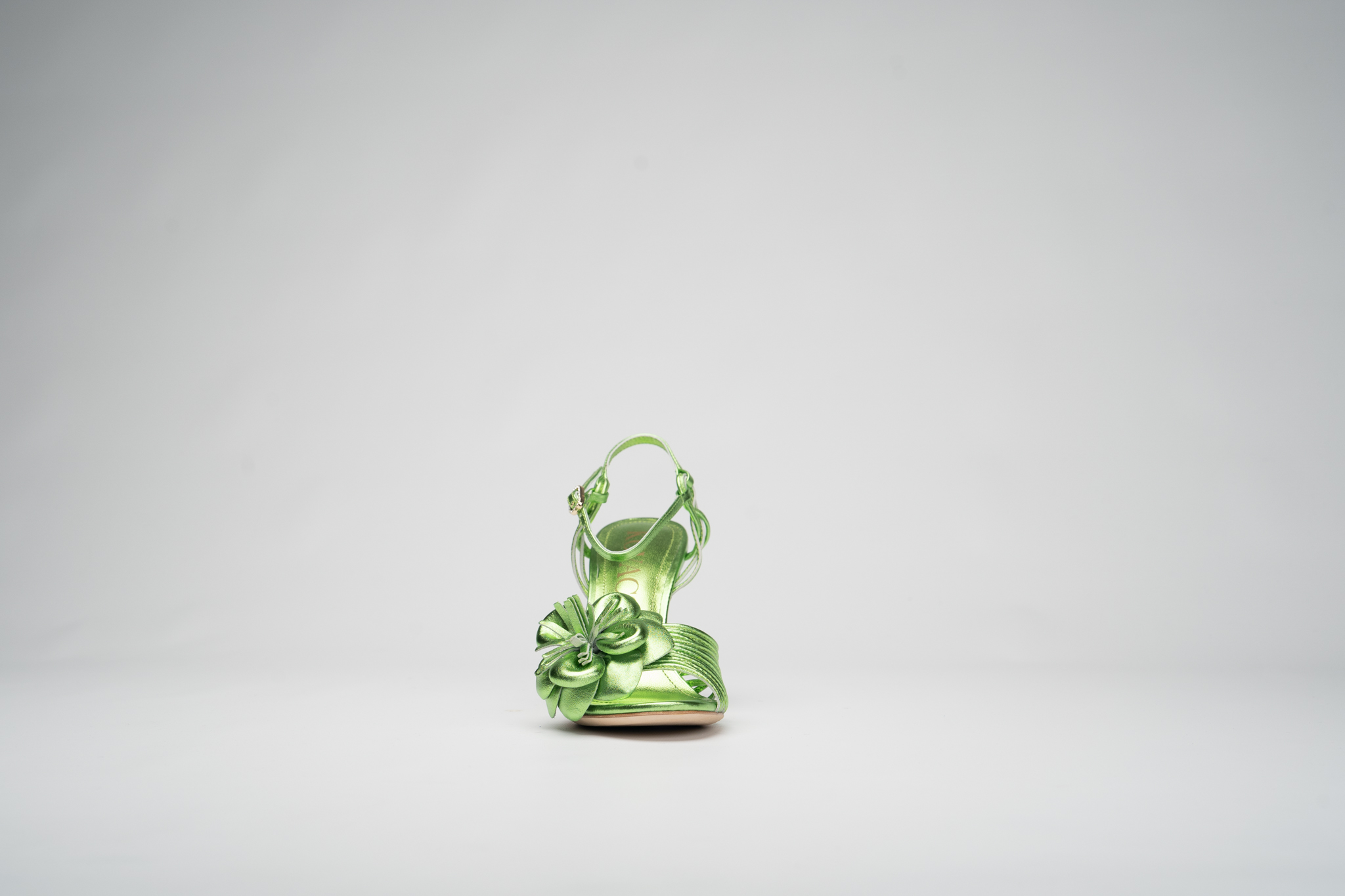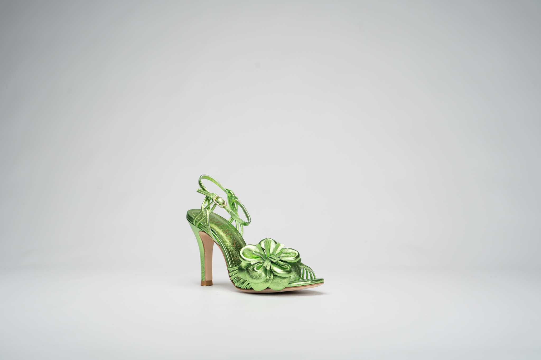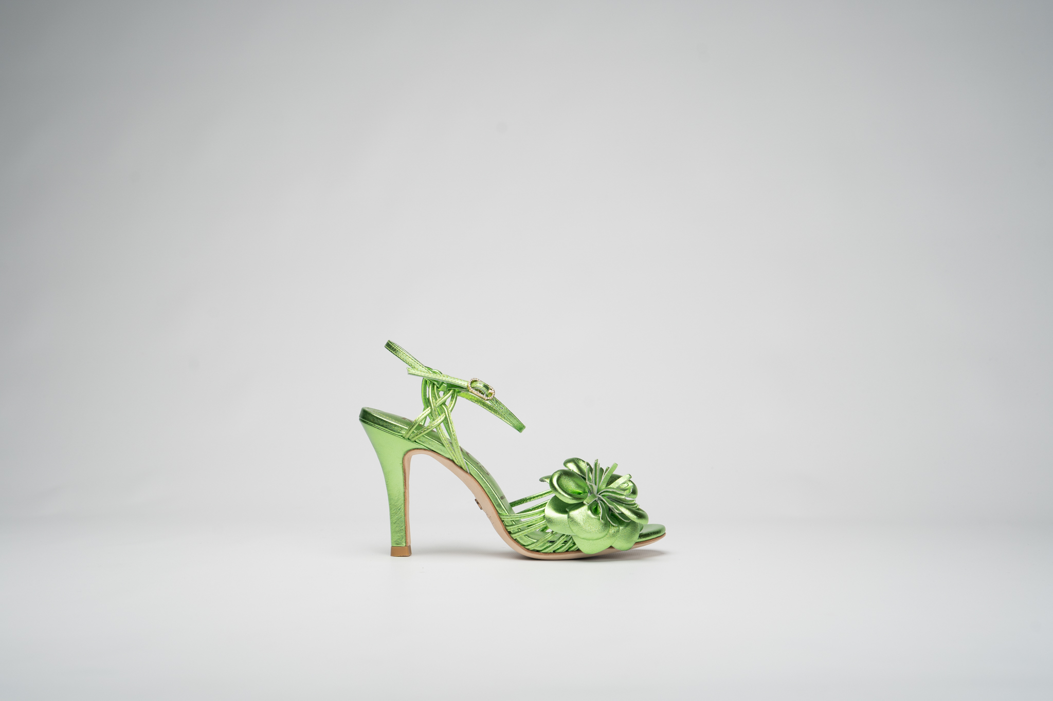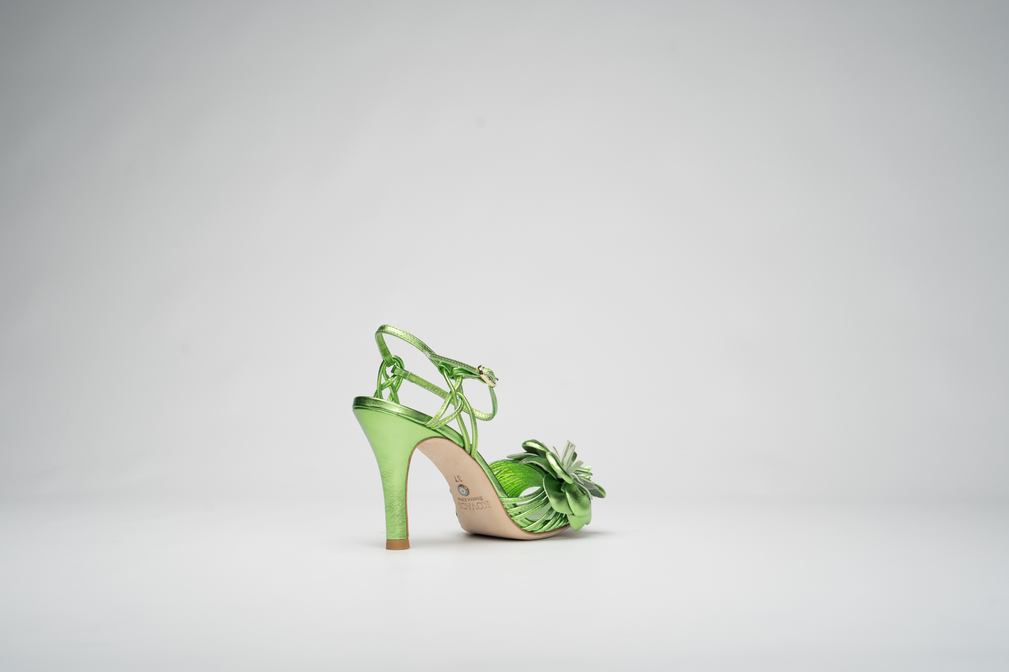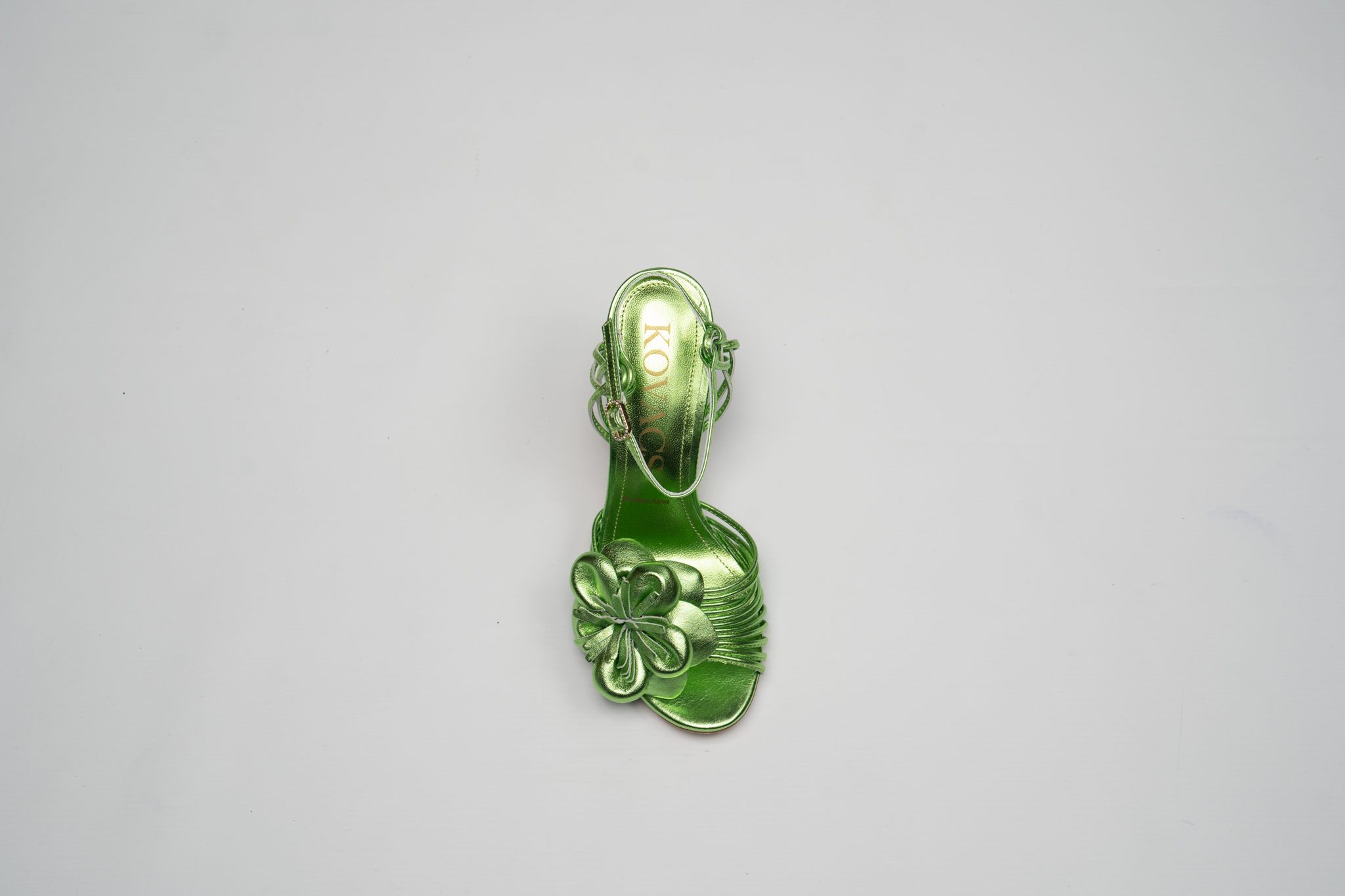 Plantilla de calcetÃn en piel verde manzana con el logotipo de KOVACS en dorado