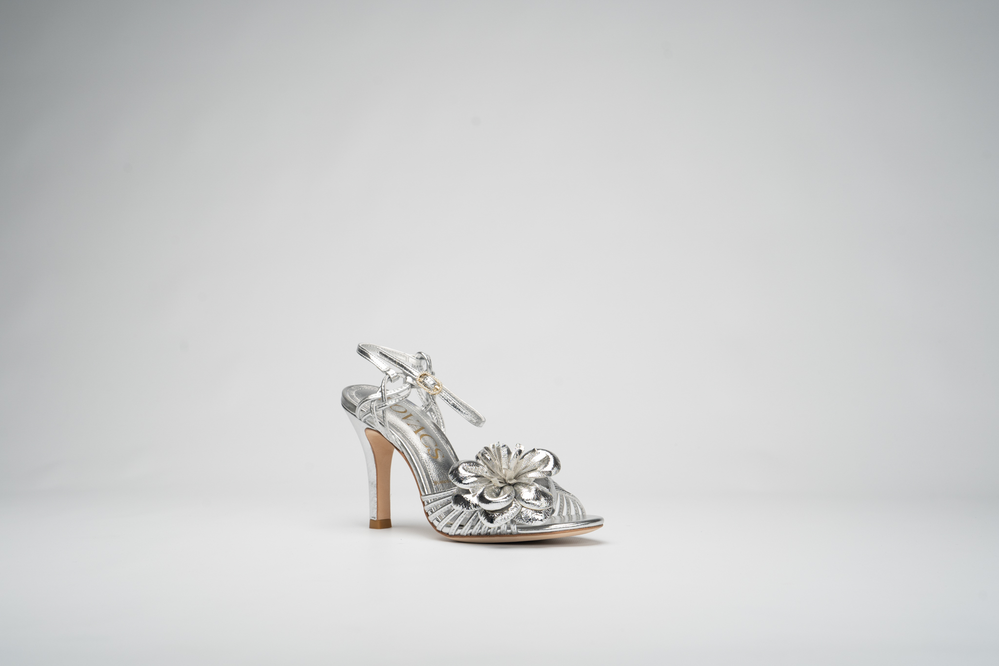 Plantilla con talón forrada con piel plateada brillante