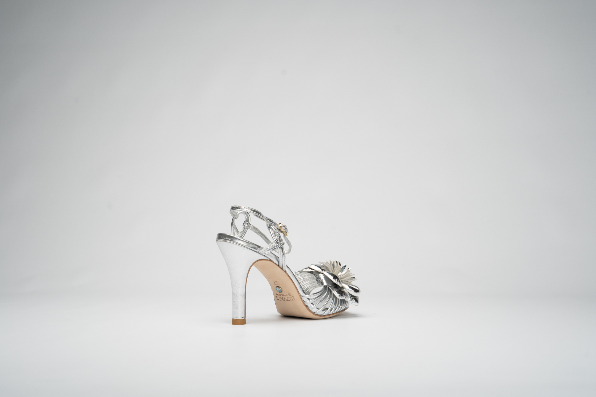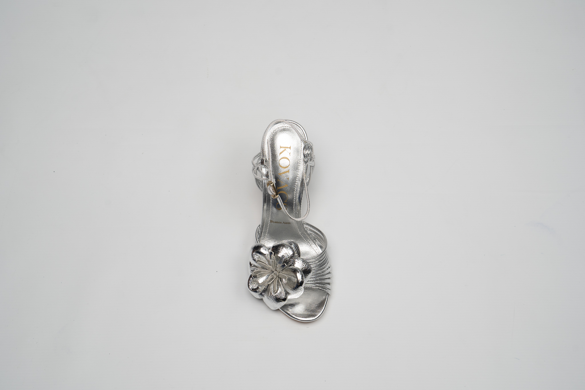 Plantilla de calcetÃn en piel plateada con la marca KOVACS en dorado