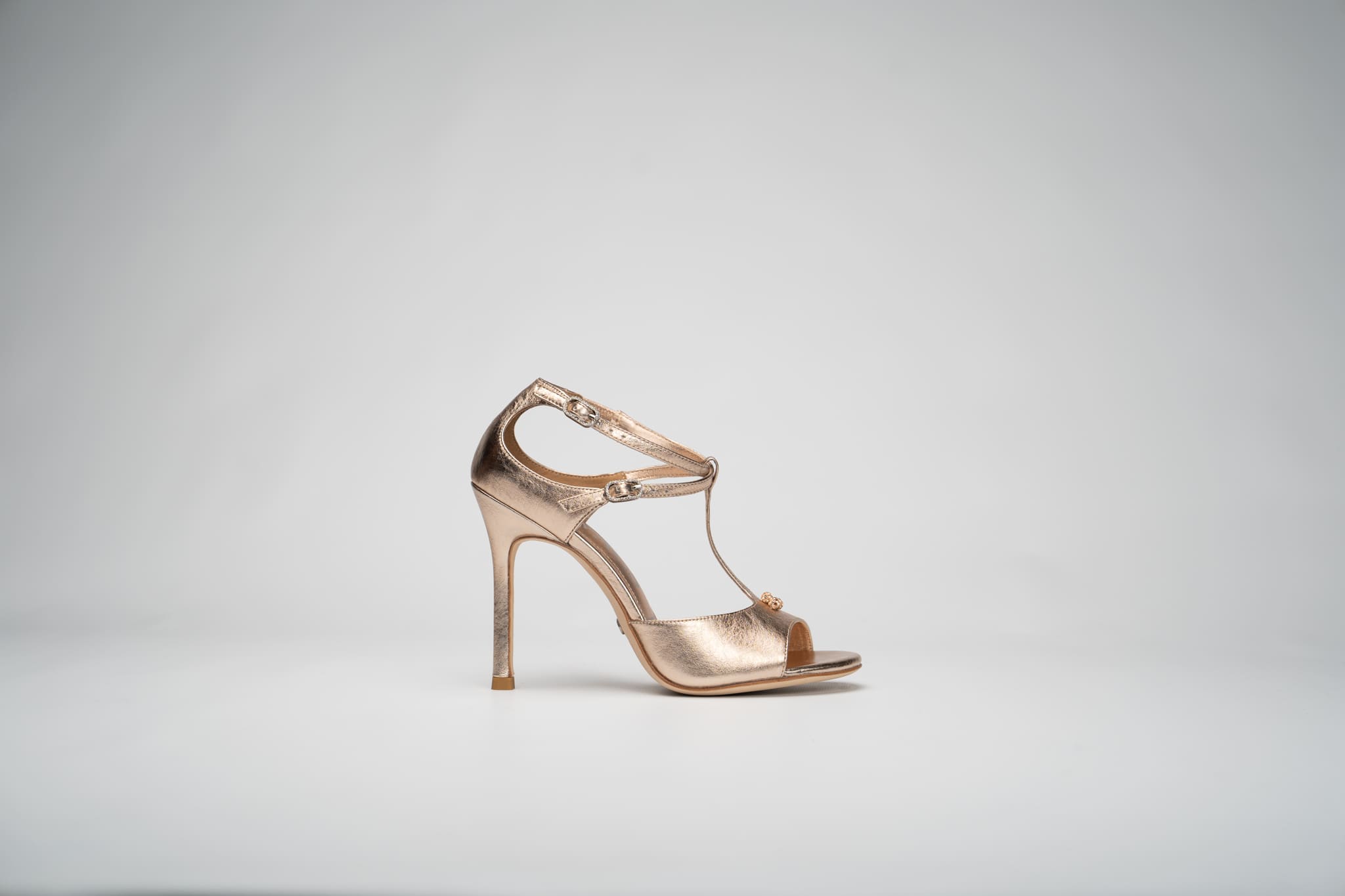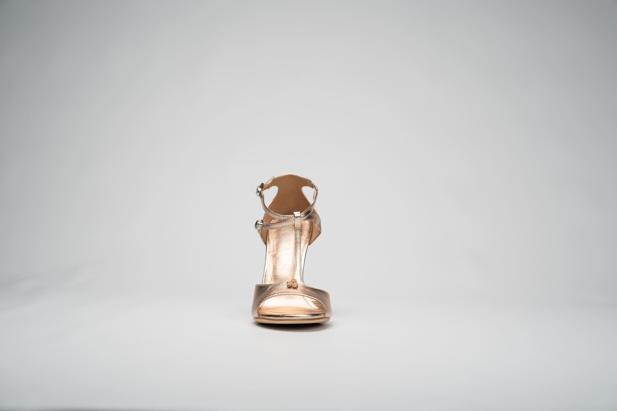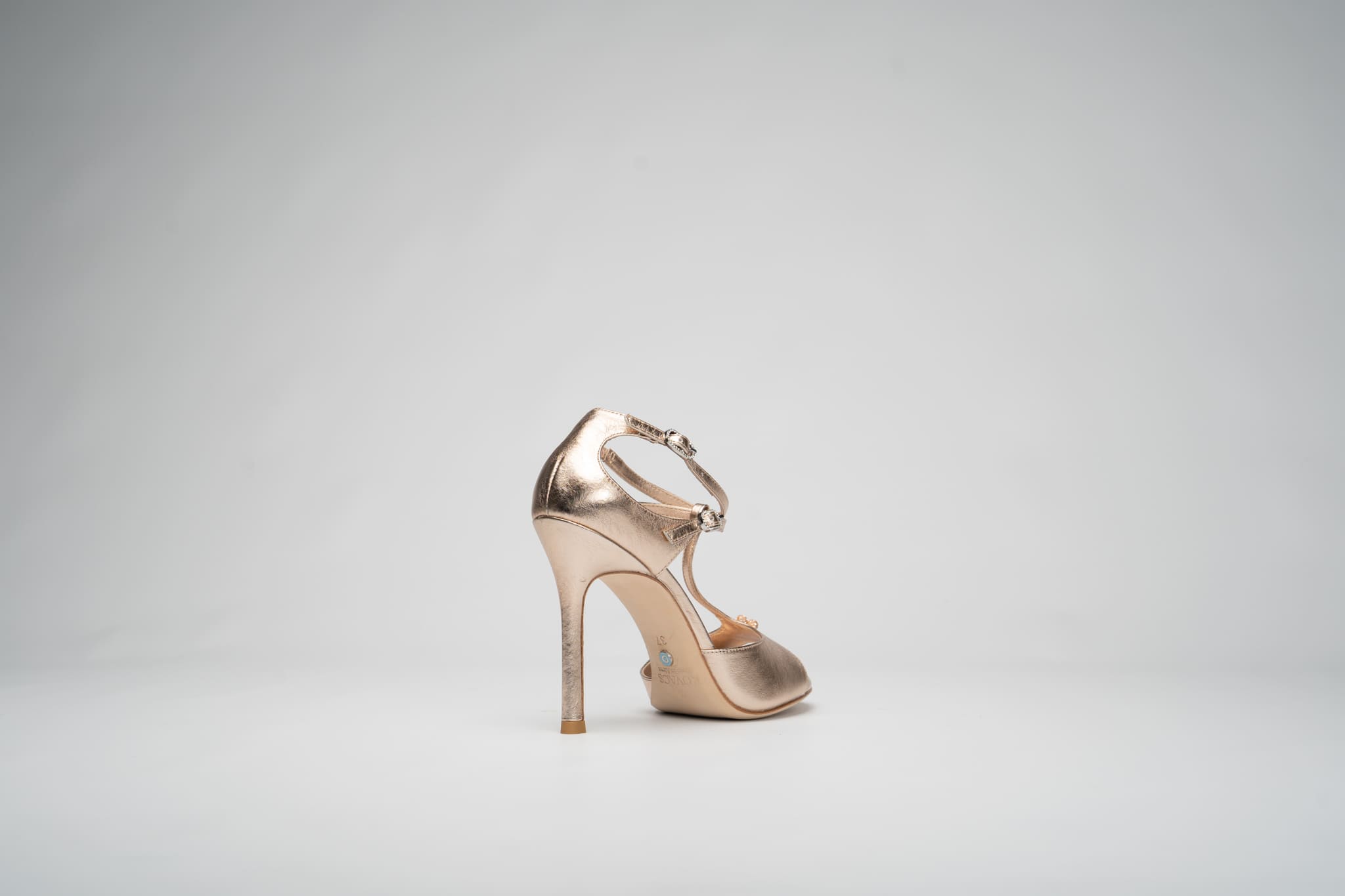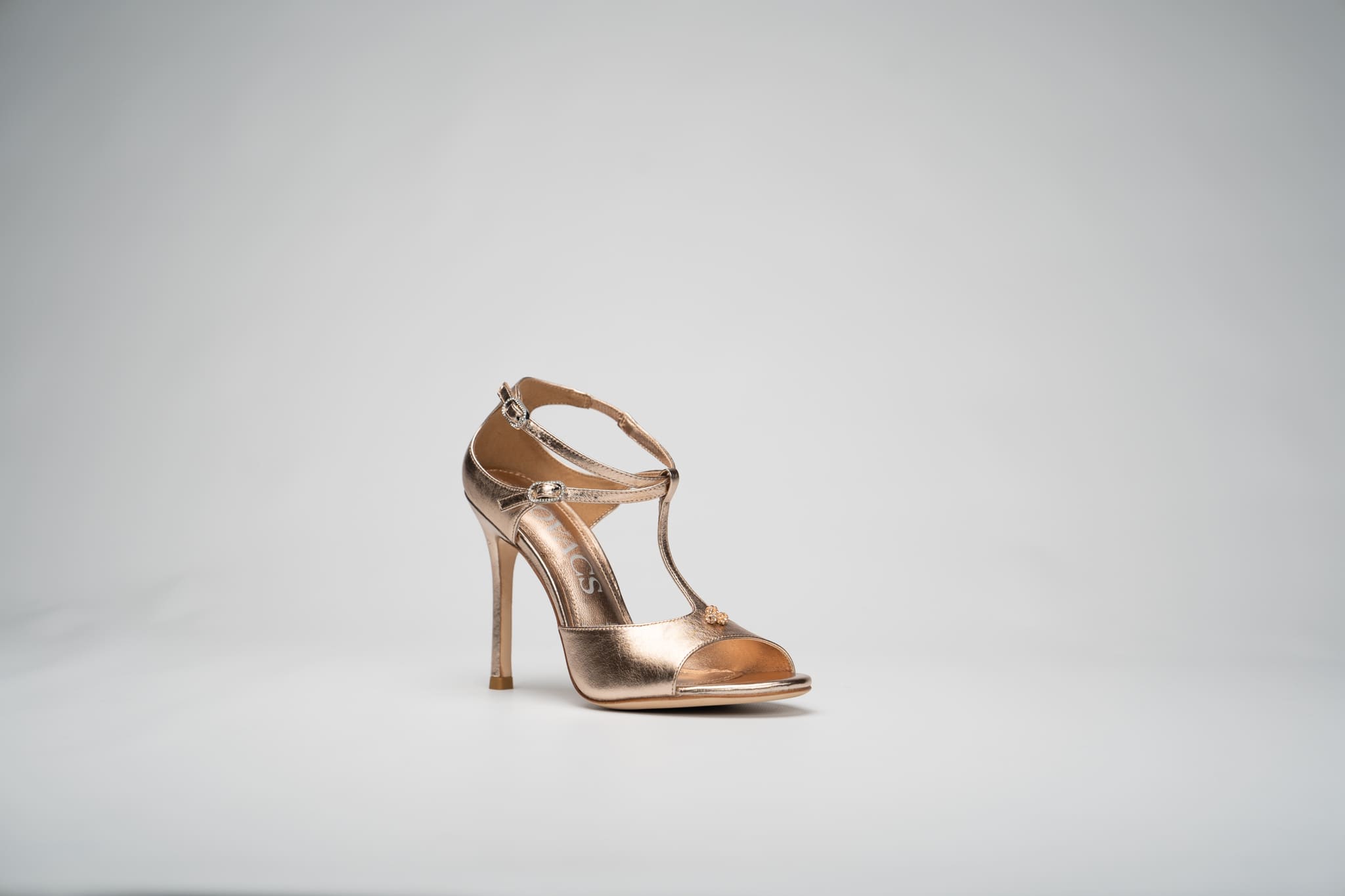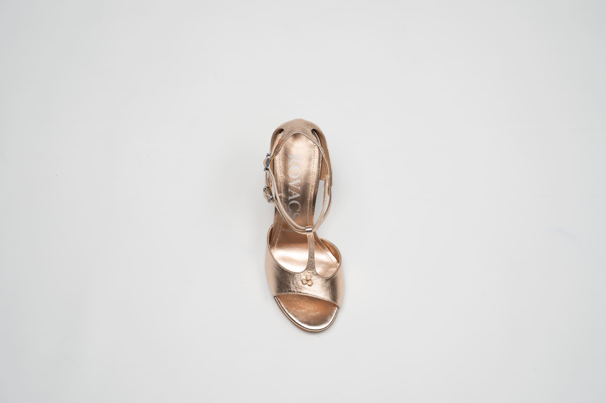 Plantilla de calcetÃn en piel rosa dorada con el logotipo KOVACS en dorado