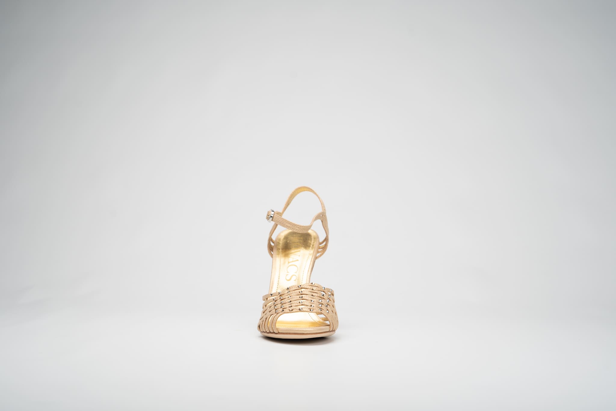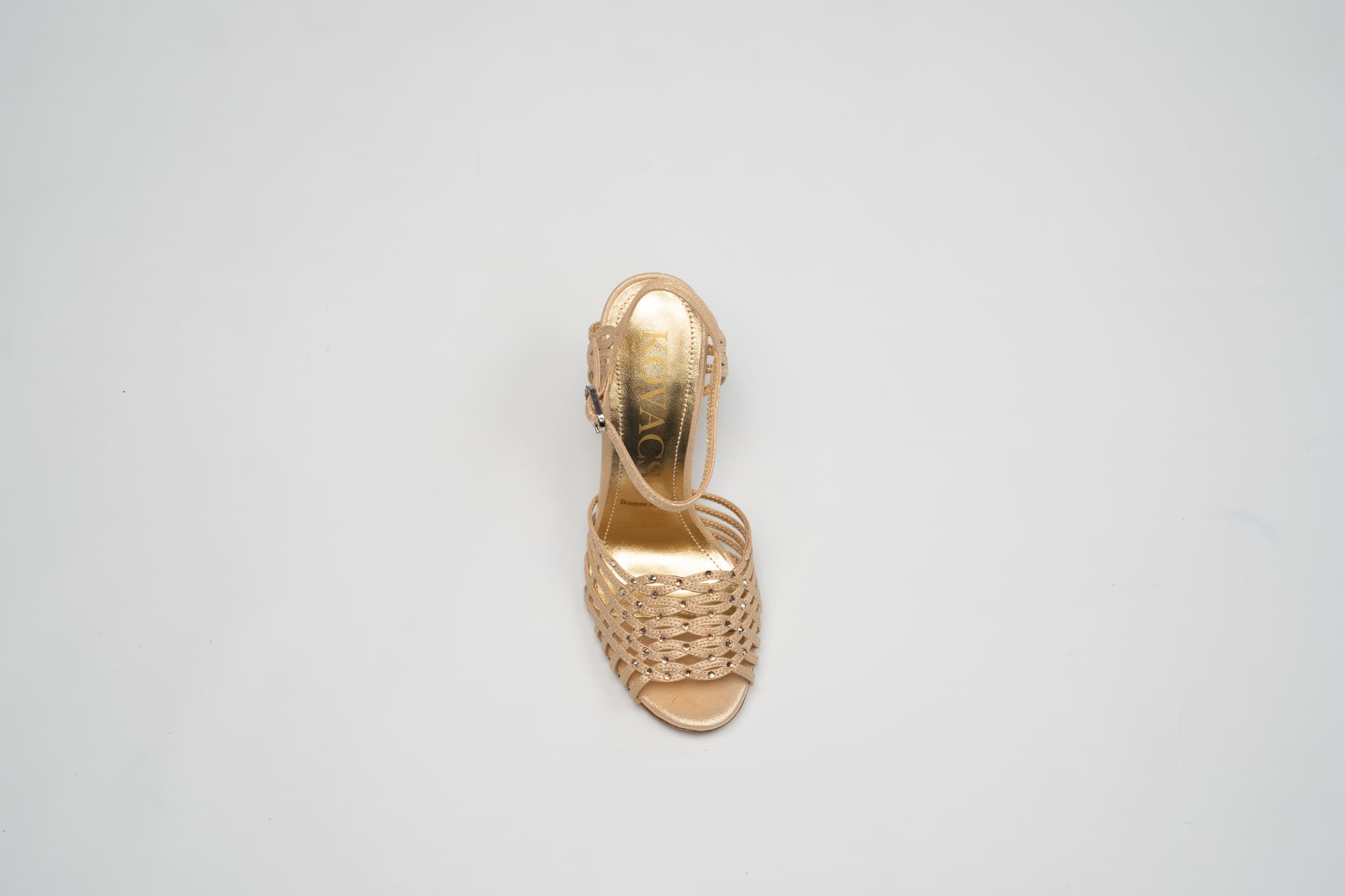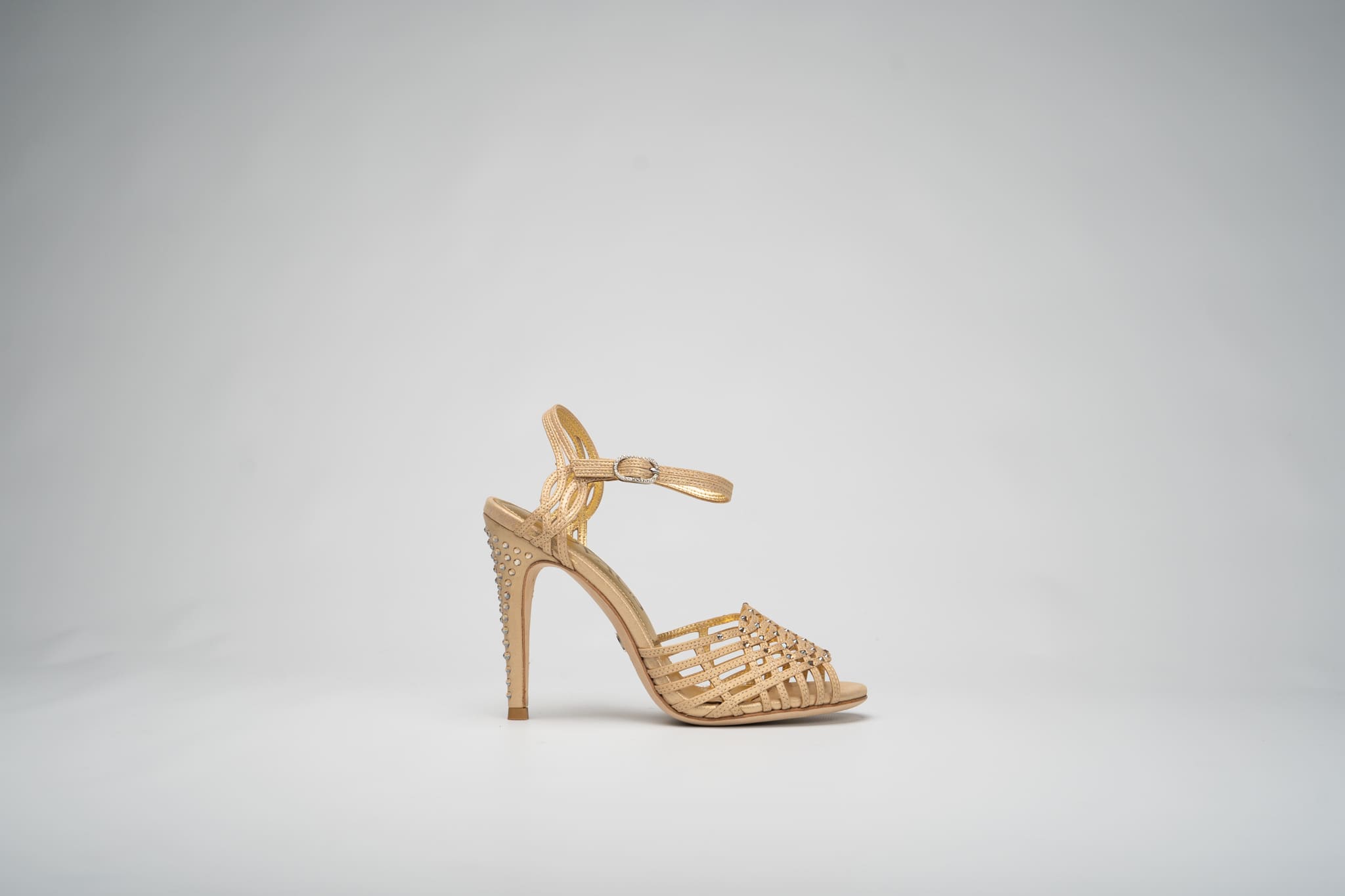 Gold micropoint bright leather upper with silk-colored crystal strass