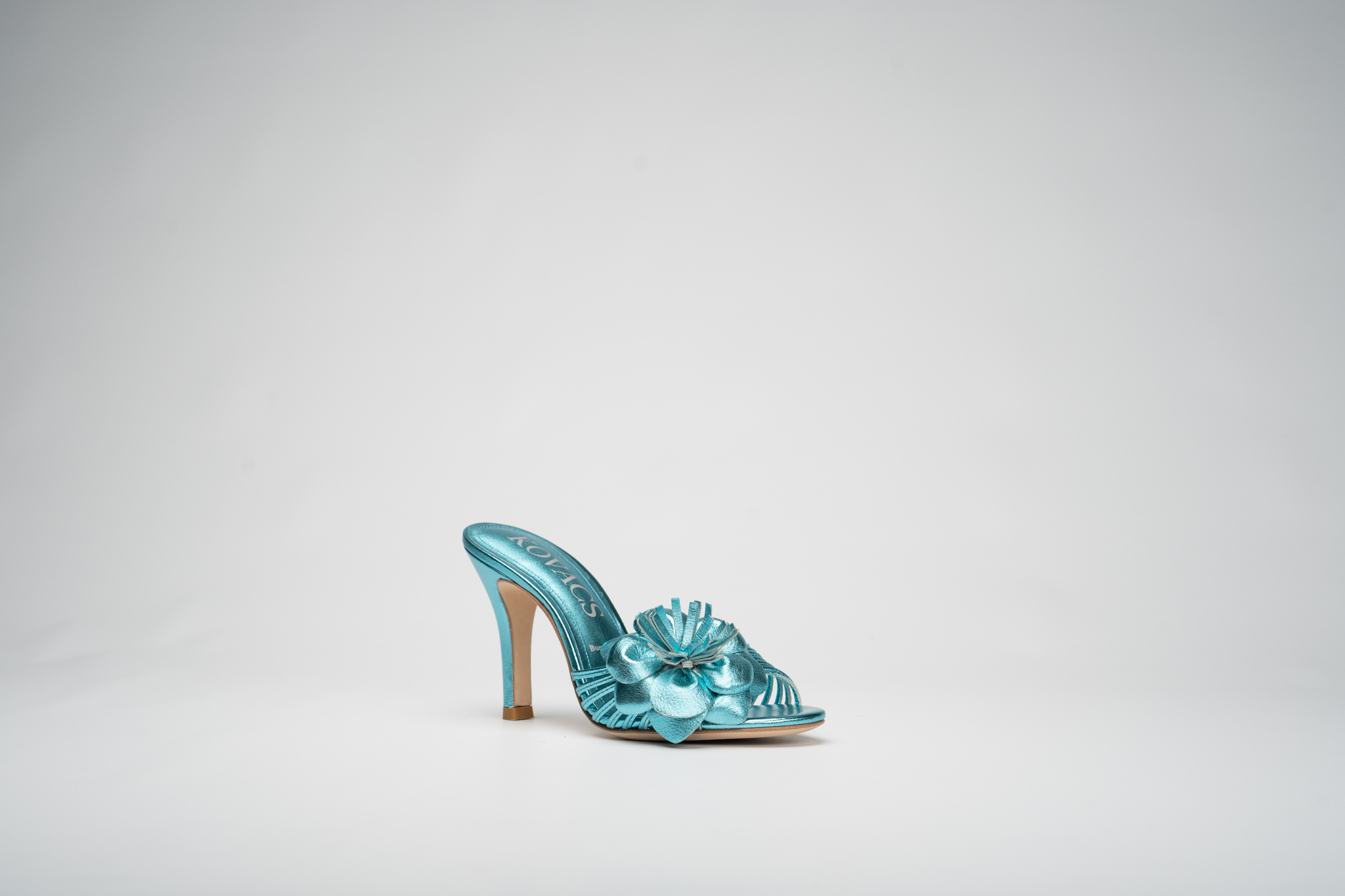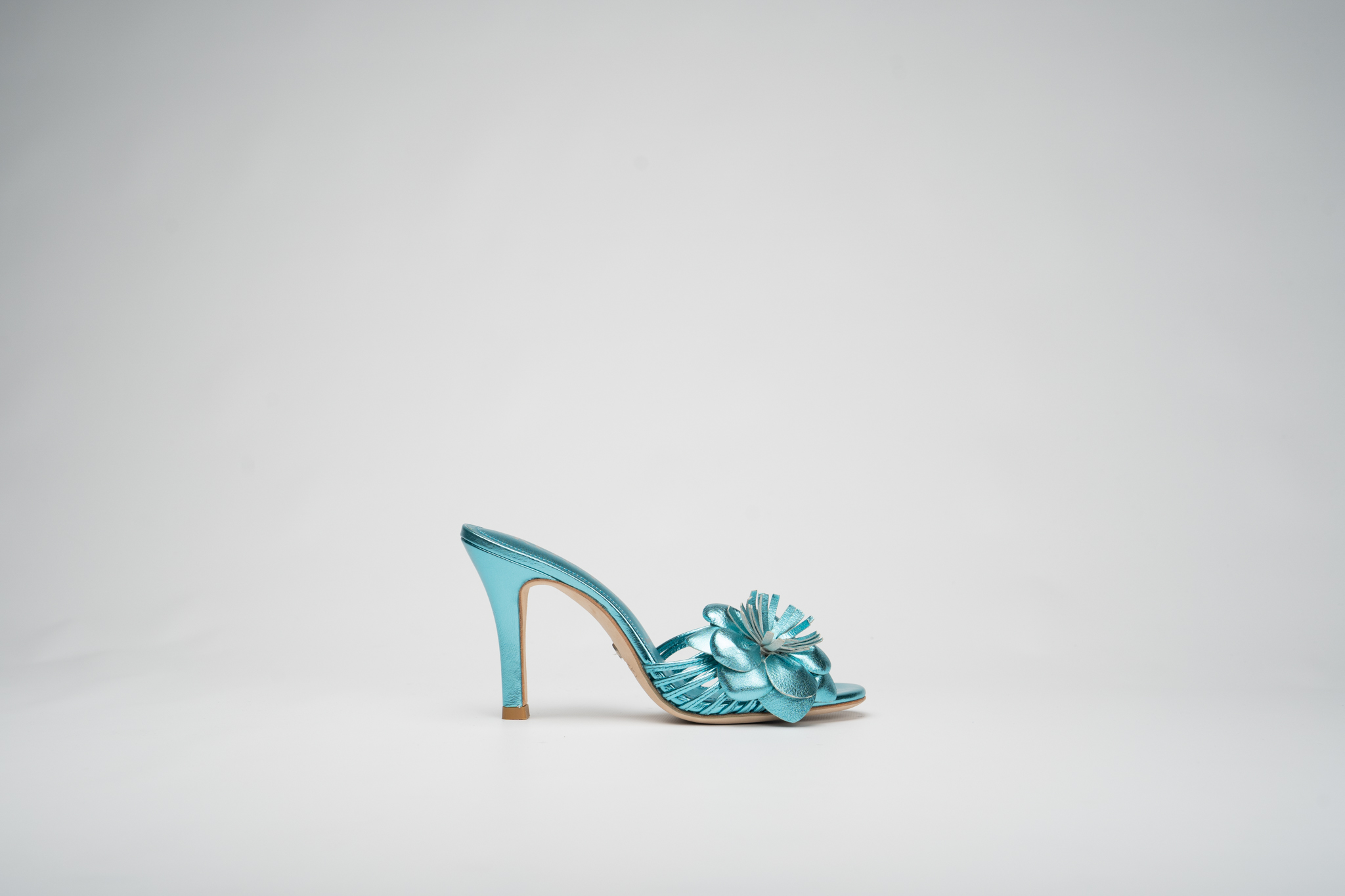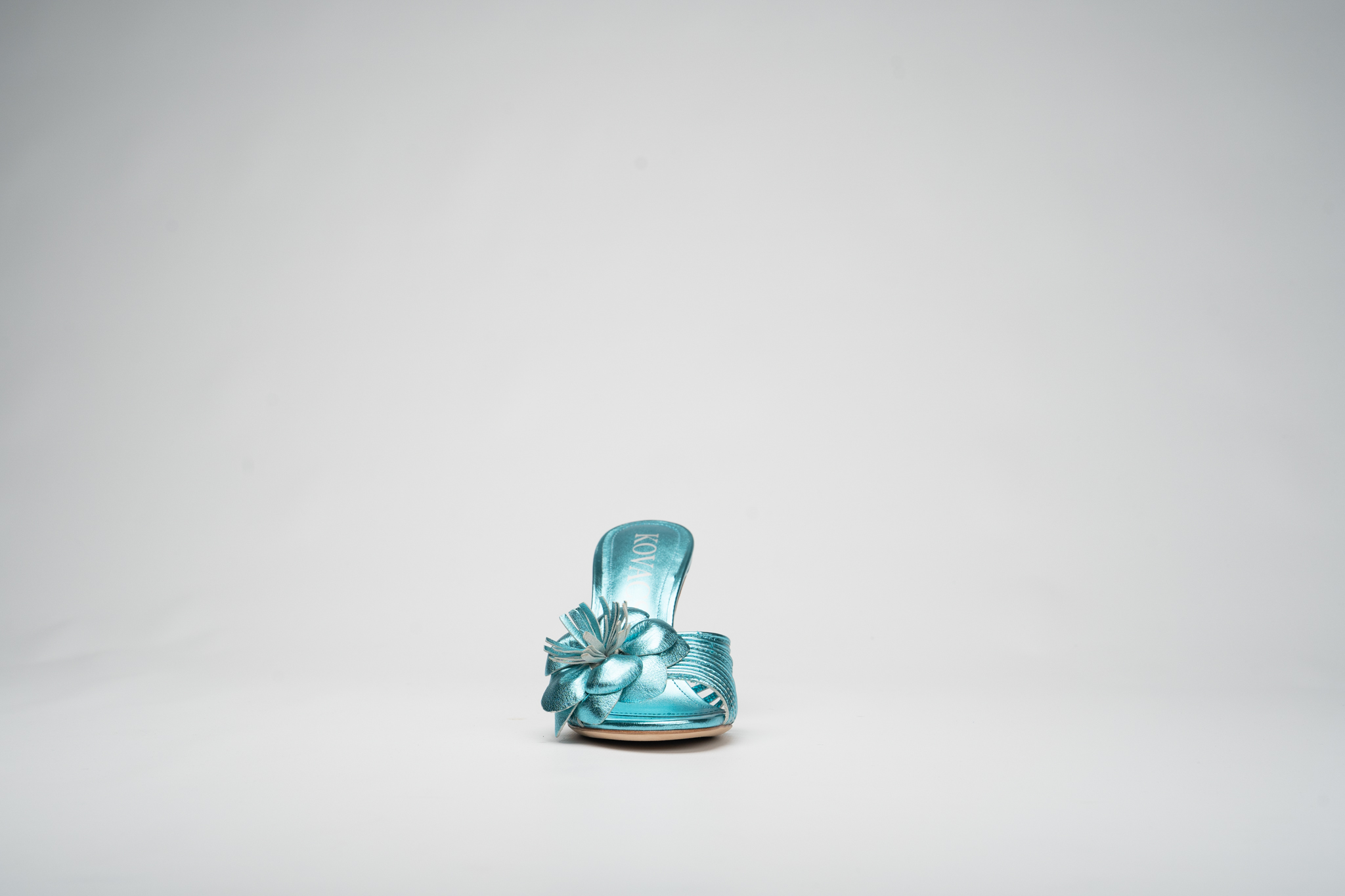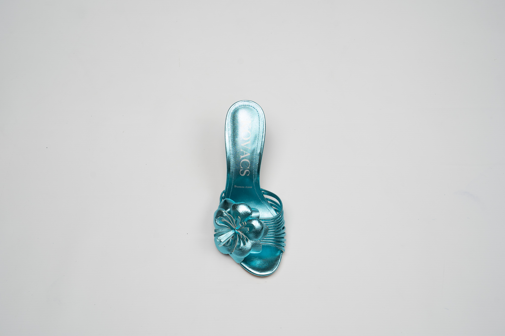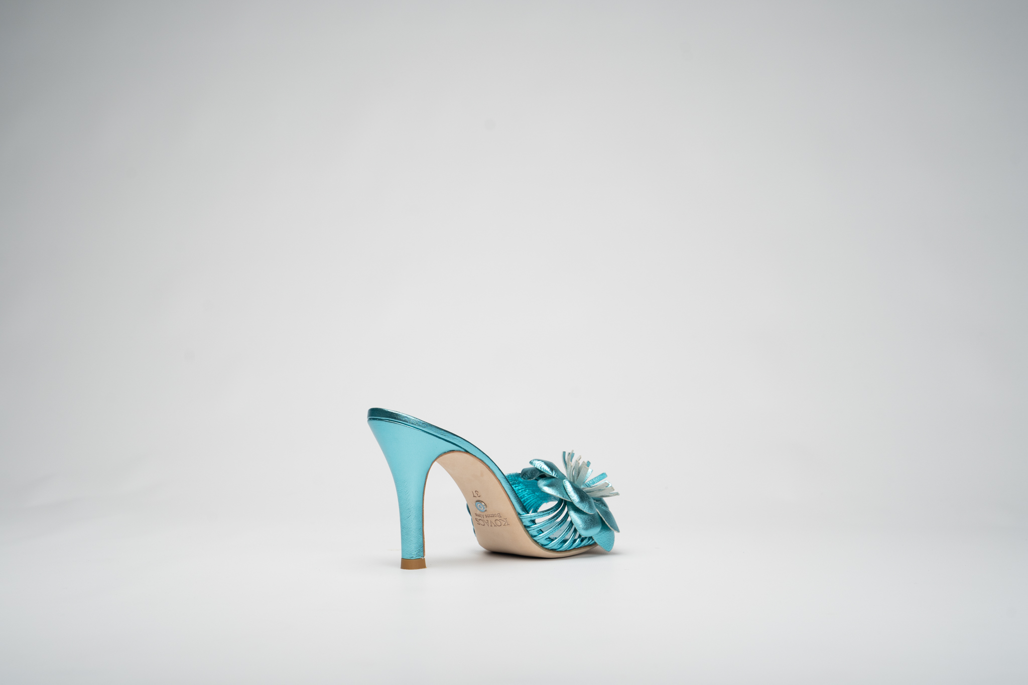 Sock insole in light blue bright leather with KOVACS branding in silver